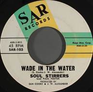 One of the first acts signed to SAR were the Soul Stirrers, who switched from Specialty. Three of the first four releases on SAR were singles by the Soul Stirrers, sung in a “Soul music” style. The first, “Stand By Me Father” (1959), has Johnnie Taylor singing lead vocal. “Nearer To Thee” (1960, on a 7” EP) features Sam Cooke on lead vocal. Both are very good, but the best of the three is “Wade In The Water” (1960), which has a dance beat with Paul Foster taking lead vocal. Cooke and Alexander were in charge of production. Sadly, the “Nearer To Thee” live recording was made while Sam Cooke was with the Soul Stirrers at Specialty. His former company took up a legal challenge to its release by SAR, and the EP was withdrawn.