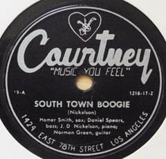J. D. Nicholson was a piano player from Louisiana, who came to Elko early in the label’s history. Five singles were issued by Nicholson and His Jivin’ Five, including the excellent “51 Boogie”. He had teamed up with Jimmy McCracklin in the forties. His first recordings in his own name are probably the two singles that were cut at Courtney Studio in 1948, “South Town Boogie”/ “Strange Woman Blues” (Courtney 119) and “Bouncing Boogie”/ “Sweet Woman Blues” (Courtney 120), all of which he wrote. They are credited to J. D. Nickelson.