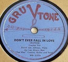 The final group whose Gru-V-Tone single survived is the Crayton Trio, whose members were Joe Lee Alcarn (bass), David Lee Johnson (piano), and Pee Wee Crayton (guitar and vocal).