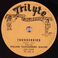 William “Thunderbird” Walker recorded two R&B Pop songs, “Thunderbird” and “I’m Thinking Of You” for the Trilyte label in 1956. Both songs are credited as written by Walker and Ollie T. Hunt.