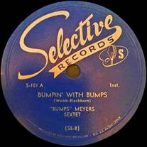 Hubert “Bumps” Myers was born in Virginia in 1912 but came to Los Angeles during his childhood. He was a tenor saxophonist who played in many well-known Jazz bands, before turning his hand to the emerging R&B styles. He played in studio sessions with T-Bone Walker and signed for Selective in 1949. Two singles were released that year, “Bumpin’ With Bumps” and “Memphis Hop”, by the “Bumps” Myers Sextet (Note: his name is spelt with an extra e on the first single). Both singles show how Jazz and Blues were merging into R&B.