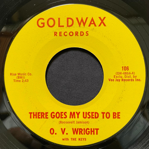 Jamison then took the tape to Quinton Claunch, who loved the songs and the singers. He signed both. Wright’s first release was “That’s How Strong My Love Is”/ “There Goes My Used To Be” in 1964. It was possibly recorded at FAME Studios, as Claunch was a friend of Rick Hall, FAME’s owner. Goldwax’s first release (“Darling” by the Lyrics), also in 1964, was recorded there. If that is the case, then perhaps The Keys, who are listed on the single as the backing group, are the FAME rhythm section. “That’s How Strong My Love Is” was soon covered by Otis Redding and later by the Rolling Stones and many other artists. It is a classic of Deep Soul, an encouraging start for O.V. Wright.